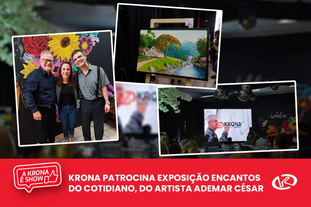 Como parte de suas ações em apoio à cultura, a Krona patrocinou a exposição “Encantos do Cotidiano”, do artista plástico joinvilense Ademar Cesar. Nesta 2ª edição, realizada na Casa do Capitão, o pintor trabalhou em conjunto com o poeta Abrantes Viana, para construir uma harmonia entre suas obras e poemas que refletem as belezas e cotidianos de Joinville. Dois dos trabalhos foram adquiridos para o acervo da Krona.