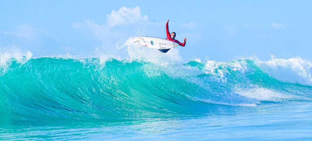 A marca da Krona está na prancha e no uniforme do surfista Amando Tenório, top 4 do circuito brasileiro profissional.